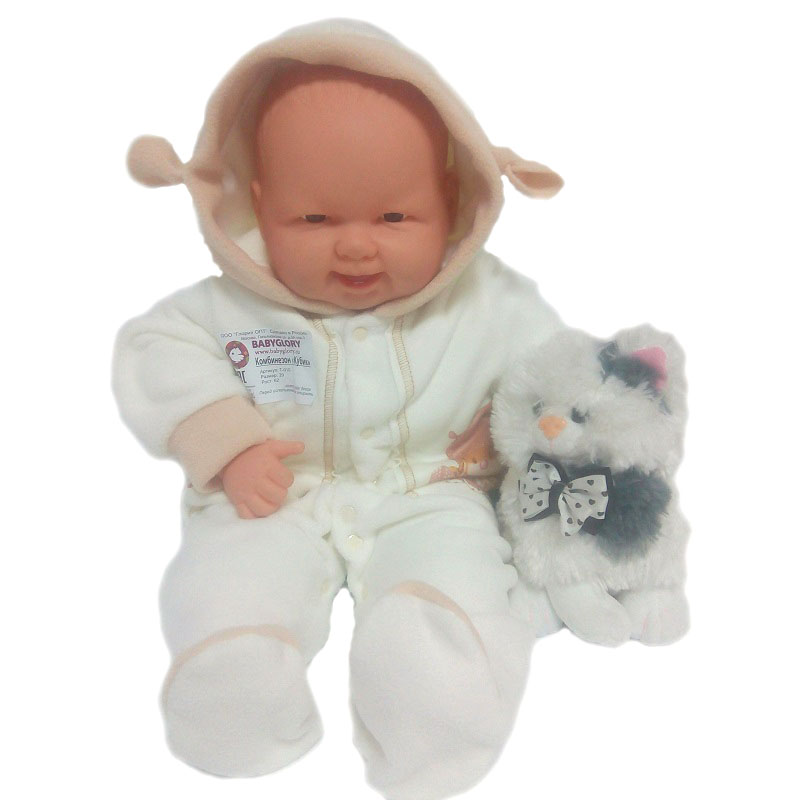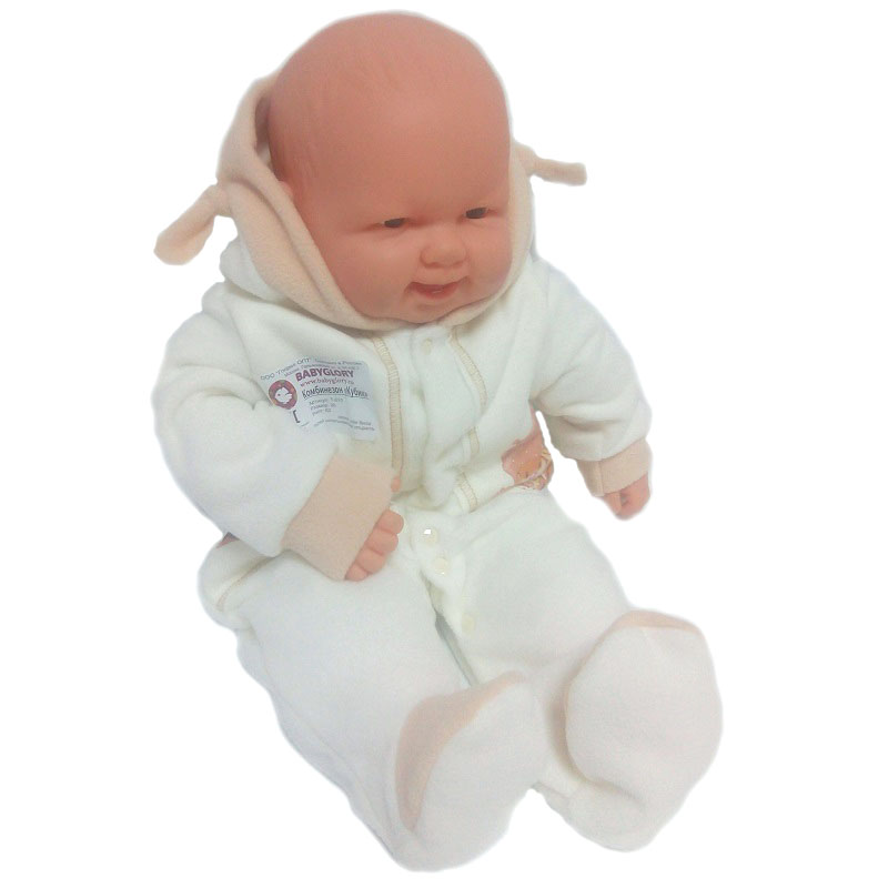 Комбинезон с капюшоном (декорирован ушками), с закрытыми ножками, рукавчики на манжетах, спереди и на ножках на кнопочках.