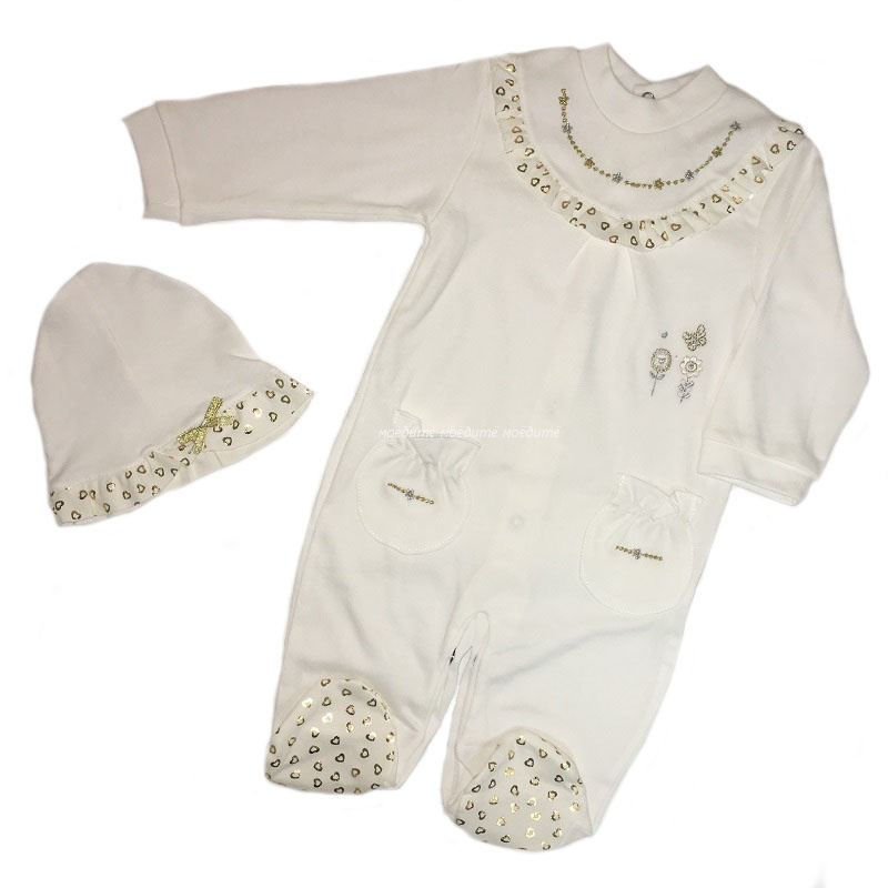 "МоёДитё" комплект комбинезон + панама на девочек М352 молочный "Каталея"